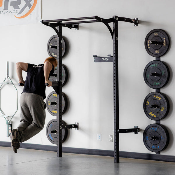 Our Profile® ONE Dip Station easily attaches to the upright of any of our patented Profile® ONE wall-mounted folding racks. Store your dip station on the wall with our sleek storage solution. Bundle both items together and save $20 today!
